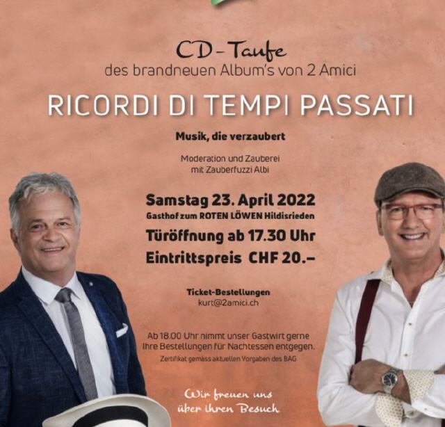 Unser neuees Album “Ricordi di Tempi passati“ ist ab sofort in den Radiosendern